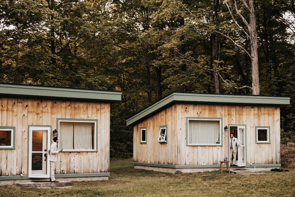 The Groomsmen Cabin provides a fun, relaxing space for the groom and his party. It features a pool table, poker table, TV, and comfortable seating—perfect for unwinding and enjoying time together before the ceremony.
