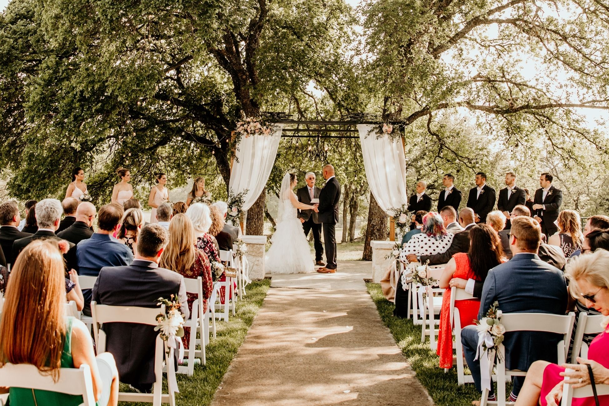 For your ceremony, you can choose between an open-air or indoor location that aligns with your vision. The venue offers stunning Hill Country views, a covered patio for cocktails, a firepit area, and ample space to accommodate up to 250 guests. This flexibility ensures an unforgettable experience for your special day.