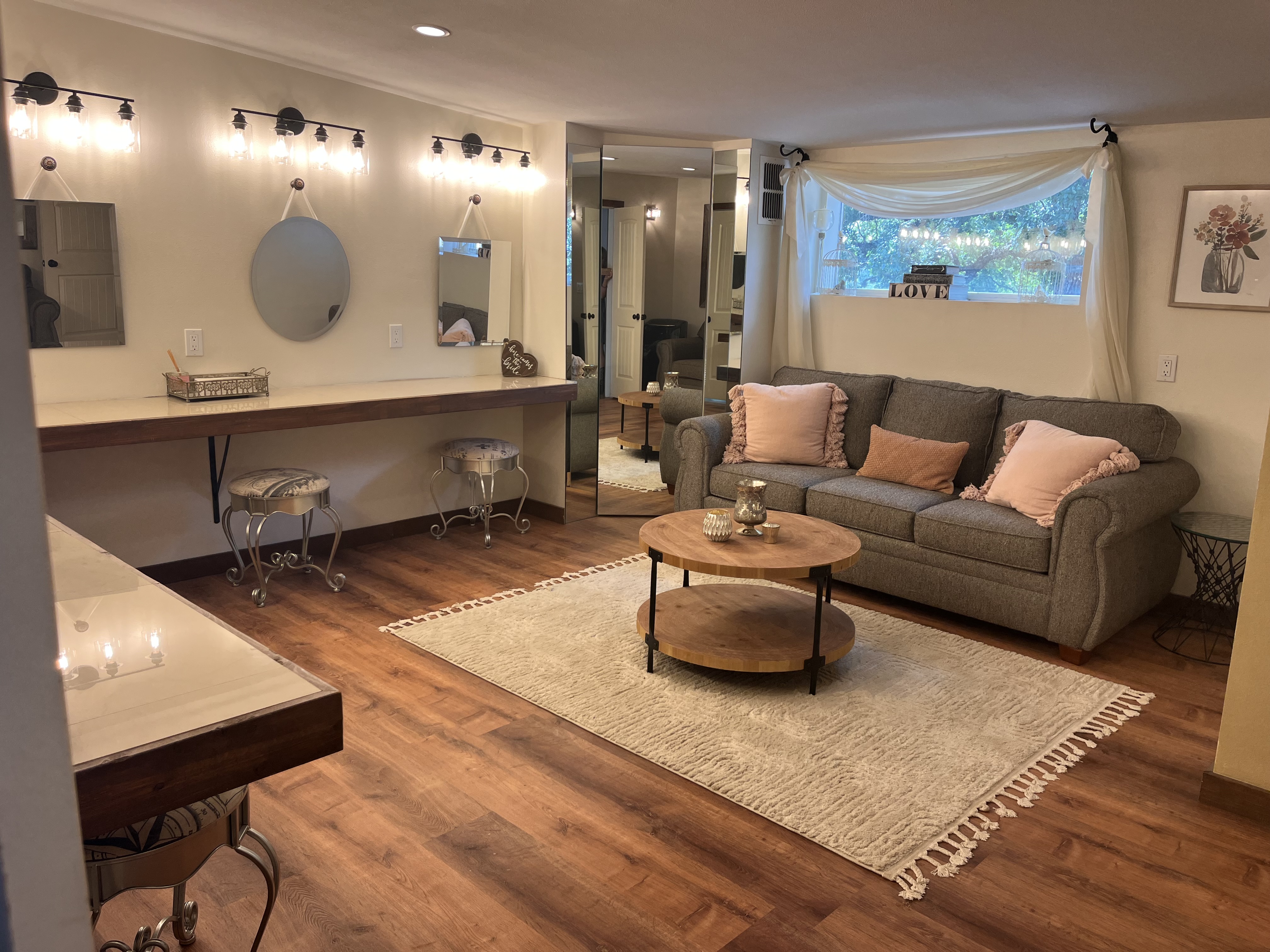 The Bridal Suite offers a stylish, comfortable space for the bride and her entourage. It includes a dedicated makeup station with ample counter space and mirrors—perfect for getting ready. This serene retreat provides a peaceful environment to prepare for the special day.